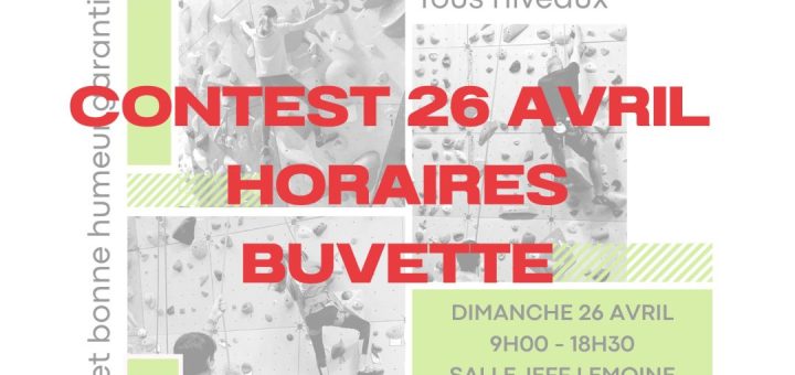 CONTEST du 26 avril – Horaires et buvette (réservez vos sandwiches et vos desserts)