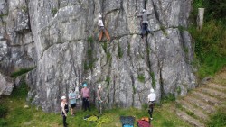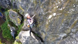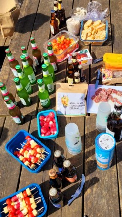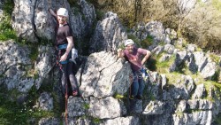 Ambiance très sympa, apéro grand luxe, et bien sûr, de la grimpe : découverte de l’escalade en falaise pour certains, oubli de matériel pour d’autres 😉 Sans oublier de belles performances dans divers secteurs du site.