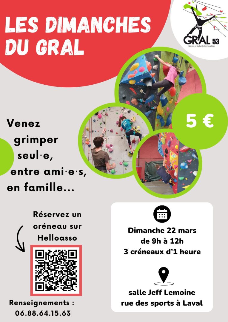 Le prochain Dimanche du GRAL aura lieu le dimanche 22 mars de 9h à 12h à la salle Jeff Lemoine.